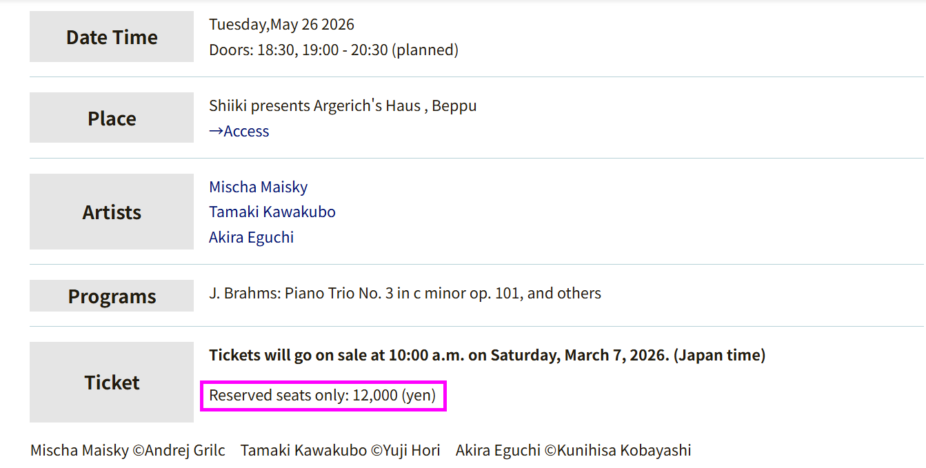 第26屆別府阿爾格里奇音樂節室內樂團音樂會5日
