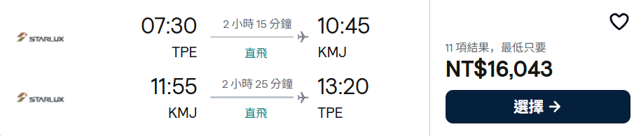 JX-1841 FUK/TPE 16:00/17:30 (2 小時 30 分)