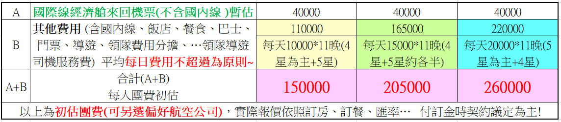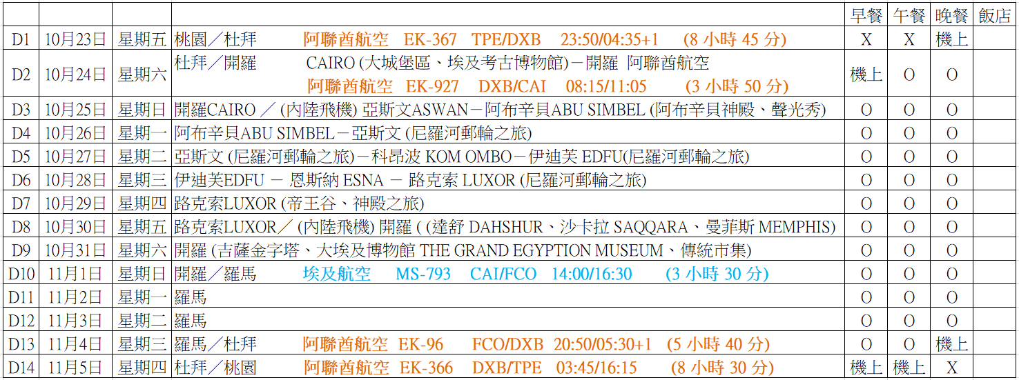 今日傍晚或夜間行程將依選用航班調整或刪除~