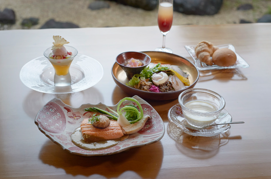 餐廳秉持融合西式料理與日式美學的概念,以清淡經典的口味,展現甲州地區的豐富物產。入住TRAIN SUITE SHIKI-SHIMA,享受輕鬆愜意的早晨,品嚐以法式技法烹製,卻又巧妙融合日式精髓的美味佳餚。