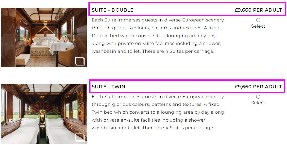 僅訂購列車車廂價格 : 每人 Historic Cabin from £3,885 英鎊起