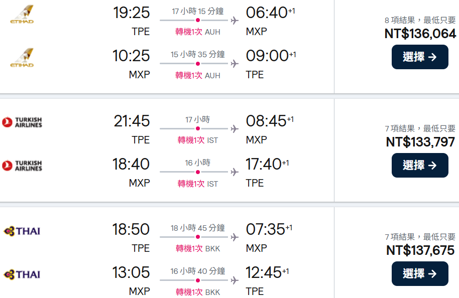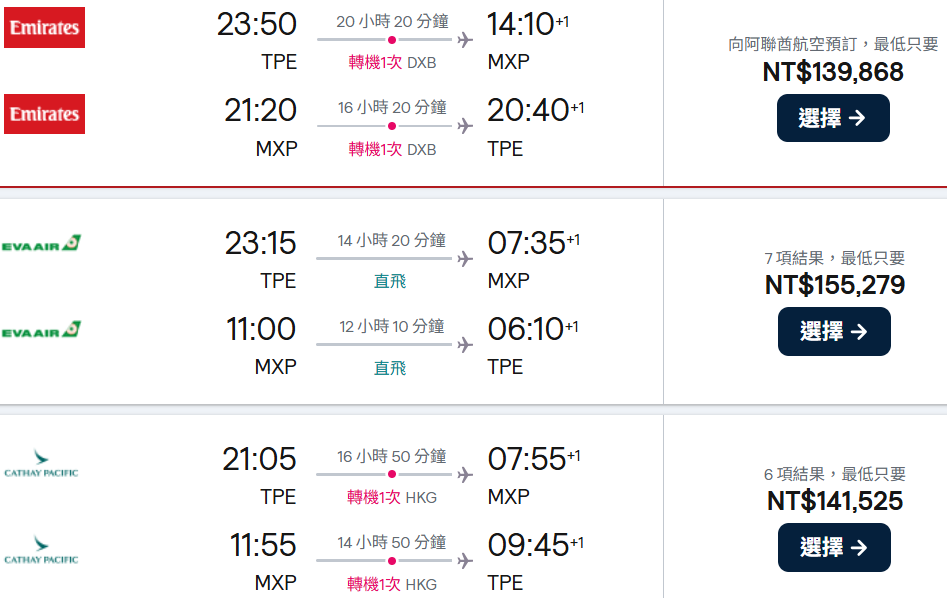 桃園╱(香港)╱米蘭