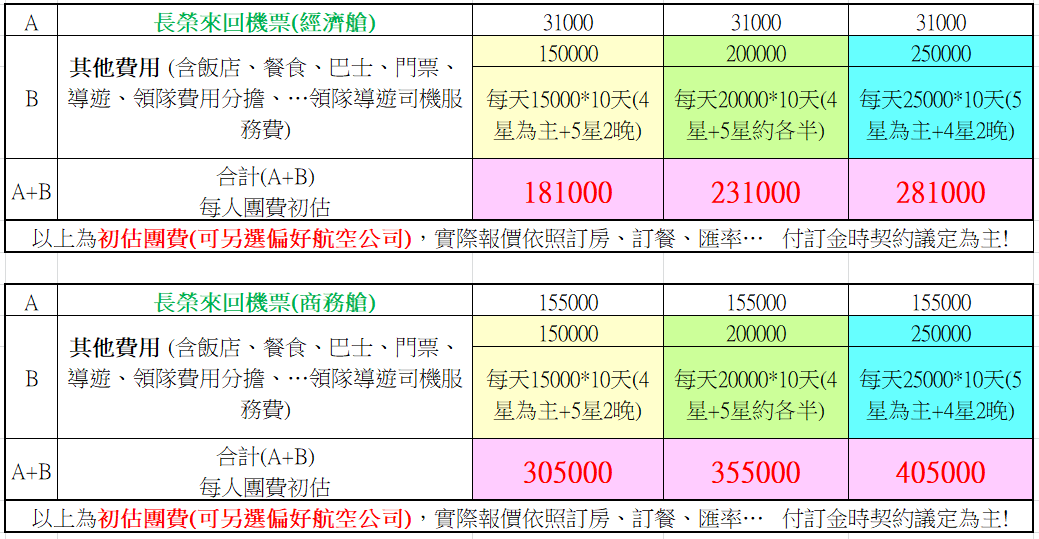 不含機票,每人台幣三萬元 (飯店餐廳確認即轉支付訂金)